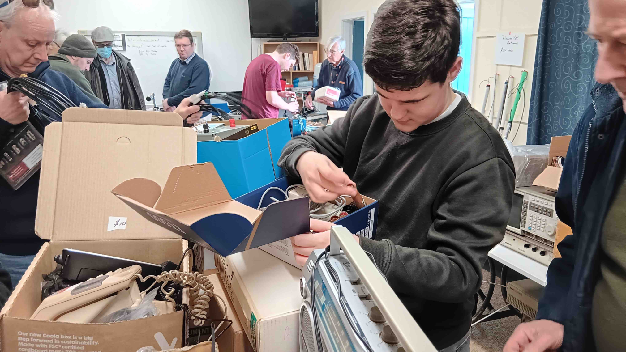 Branch 42 held a Junk Sale on Saturday 26 August at their clubrooms: Tireti Hall, corner Tireti Road and Te Pene Avenue, Titahi Bay, Porirua 5022. THis was well supported by Branch 50 members. Some bargains were to be had. The photo shows Daniel ZL2DTL pouring over a box of high quality used equipment and considering whether it was worth investing hard earned cash!